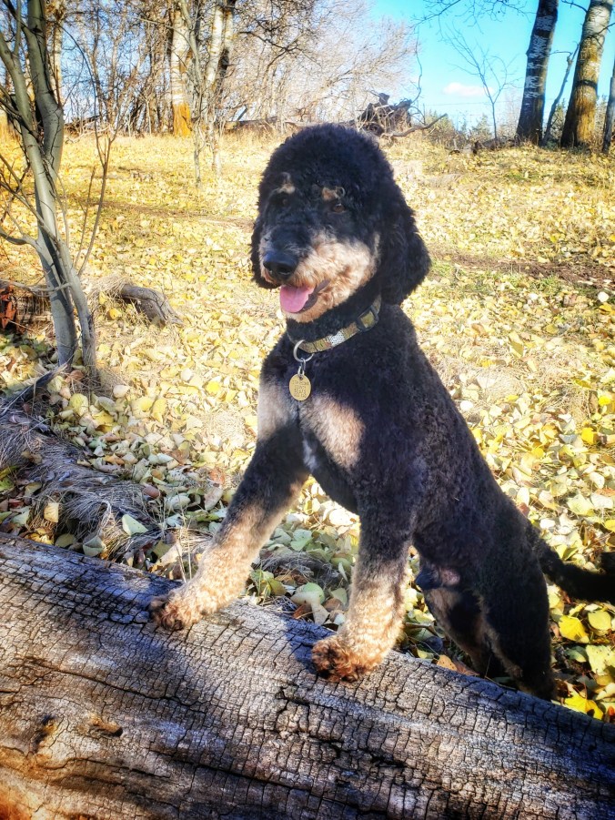 Poppy is our extrovert and definitely top dog. She is 18″ tall and our leader. Always first out the door and loves life.